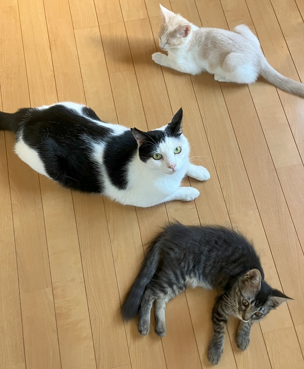 地域猫仲間のMさんより受け入れた保護猫の子ども。オス。2025年8月現在、体重約1.5kg。Mさん宅で面倒を見…