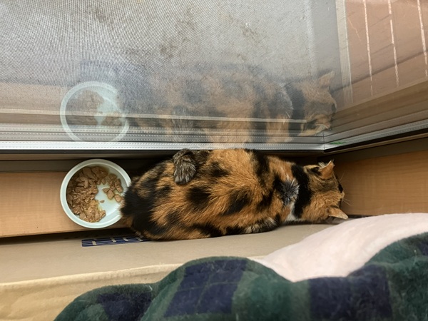 夜中は少し動き回っていたようだが、今日は朝から窓際でずっとうずくまっていた。