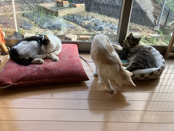 きょんは外の冬を何度も経験してるけど、子ねこたちはこれが生まれて最初の冬。